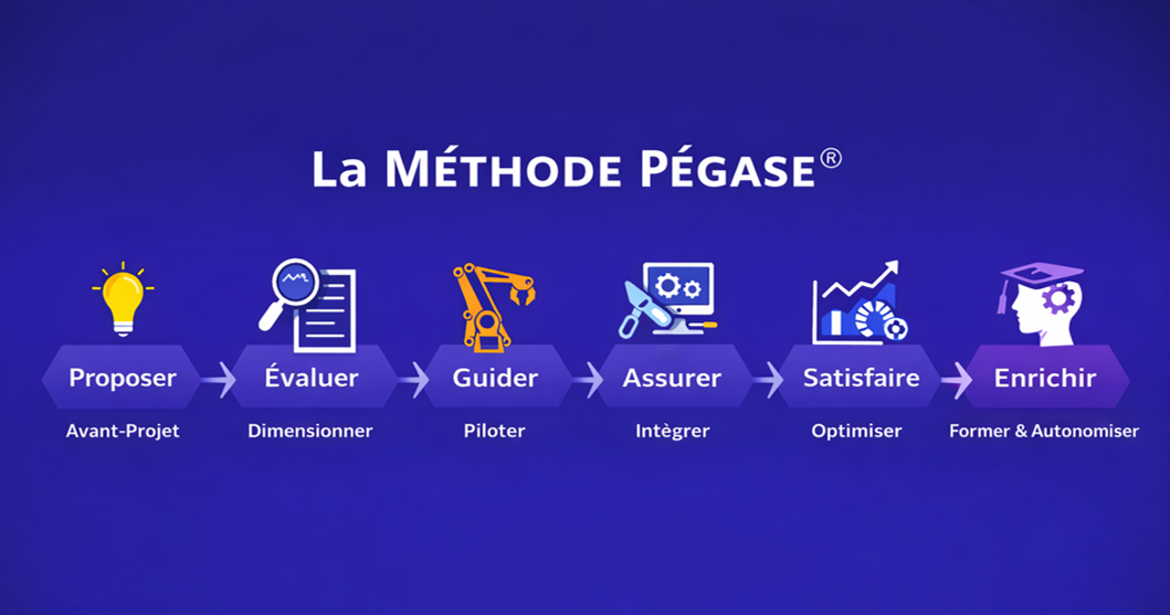 Nous mettons en œuvre notre savoir-faire grâce à : LA MÉTHODE PÉGASE.
